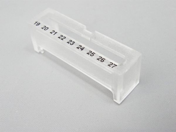Trasparenti Con Feritoie Numerati Passo 5 › COPRIMORSETTO TRASPARENTE CON FERITOIE SERIGRAFATO 3 MODULI 19...27